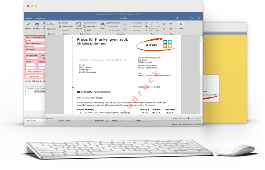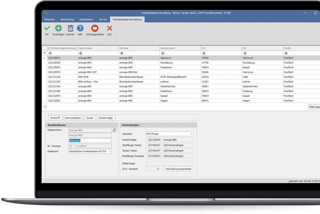 ADTax erzeugt die einzelnen EDIFAKT Segmente bereits bei der Dateneingabe. Wird die Abrechnung gestartet, werden alle noch nicht abgerechneten Verordnungen gemäß Kostenträgerdaten und eigenem Standort den Abrechnungspartnern zugeordnet. Dieser Vorgang ist in wenigen Sekunden abgeschlossen.
